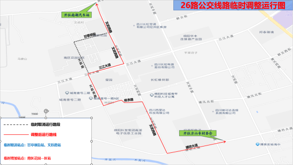 今天(8月15日),记者从市公交集团了解到,由于南区花园街道一体化设计项目(甘草坝街)将进行封闭施工,从2024年8月18日0时起,26路公交线路将临时改道运行。