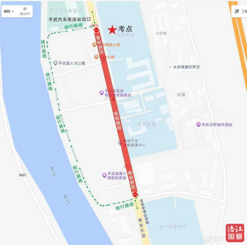 管制路段:平武县新客运站出口至龙安中学红绿灯。