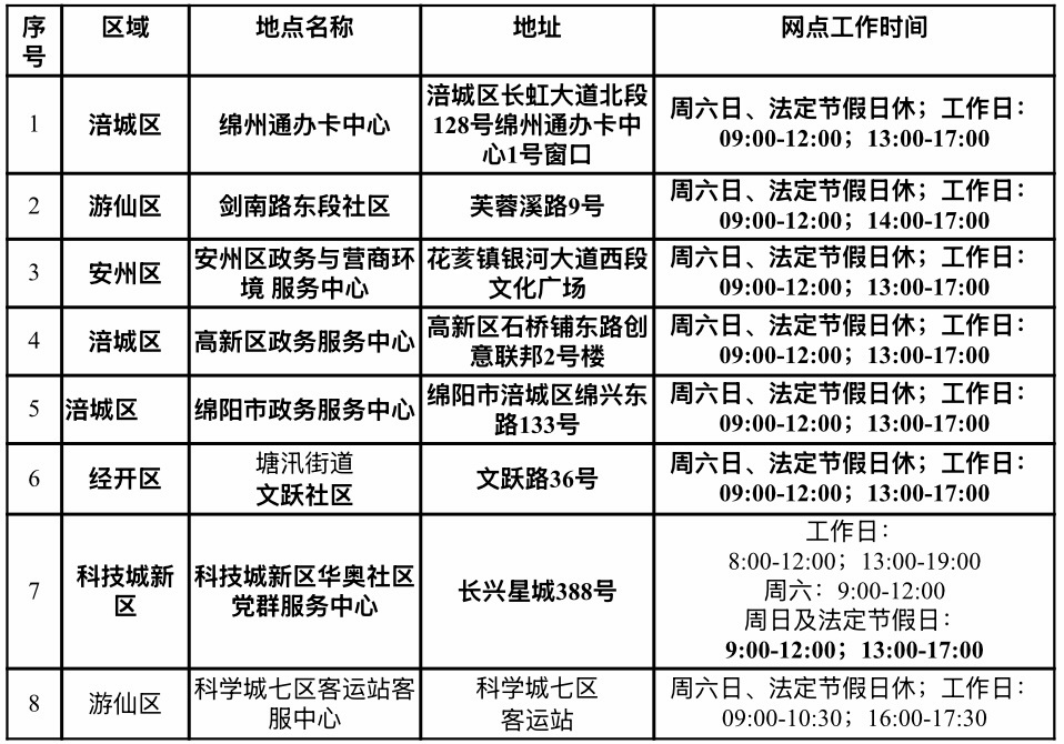 绵州通办卡中心(涪城区长虹大道北段128号1号窗口),服务咨询电话可拨打0816-2244123或0816-2123666。