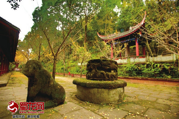 琴泉寺右侧的蟠龙园有许多古迹,其中最值得一提的有石柱盘龙、赵碑、颜碑。“石柱盘龙镇梓州,凤凰展翅盖牛头,三台山上七星现,马跃岩前观鱼游。”这是后人对三台重要景观的概括,其中,古梓州城七大景观之首“石柱盘龙”就在蟠龙园内。