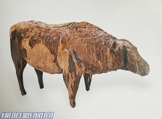 在绵阳市博物馆的馆藏文物中,有一批西汉时期的木牛,其中一件在绵阳市博物馆展厅向社会公众展出。