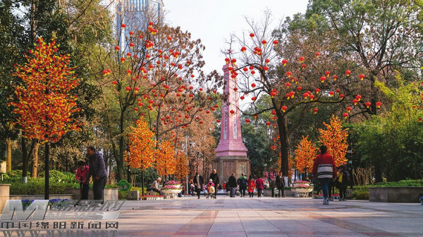 人民公园内大红灯笼高高挂(视觉绵阳 李孝鑫 摄)