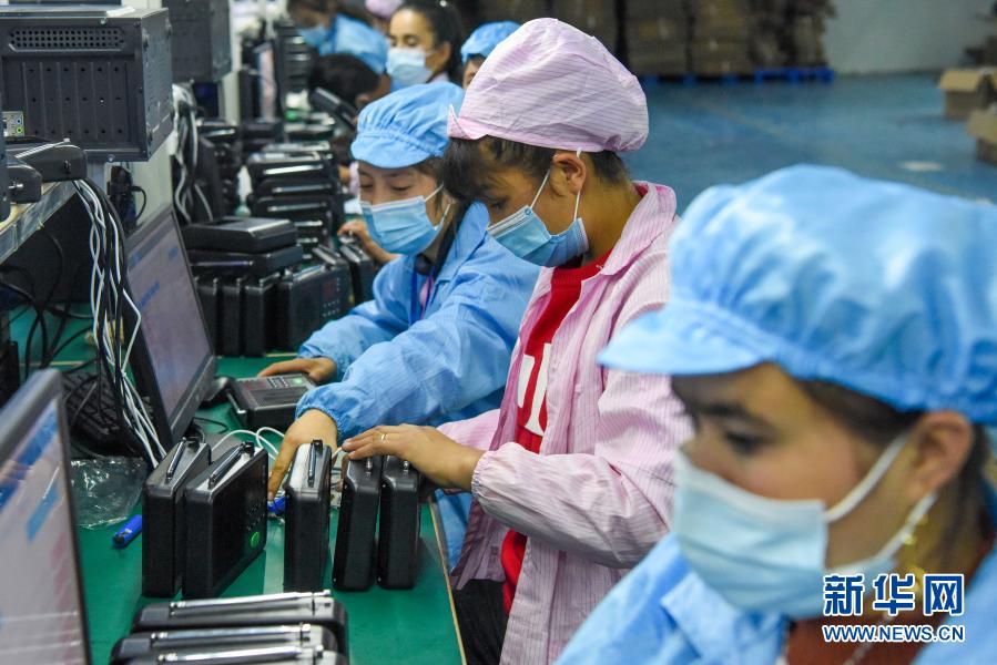 在位于新疆策勒县天津工业园内的智能制造产业园,工人在流水线上忙碌(2020年11月4日摄)。新华社记者 丁磊 摄