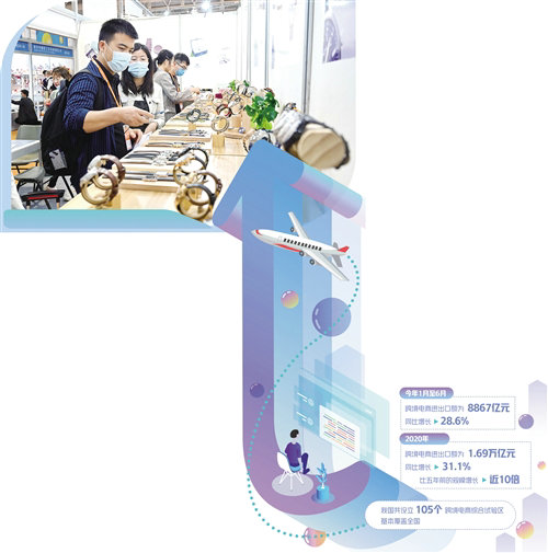 在去年新冠肺炎疫情对全球供应链和传统经贸活动造成深刻冲击的情况下,中国跨境电商逆势而上,全年实现进出口额1.69万亿元,同比增长31.1%,比五年前的规模增长了近10倍,有力支撑了我国进出口贸易增长。今年7月,国务院办公厅出台《关于加快发展外贸新业态新模式的意见》,再次释放跨境电商领域重大政策利好。