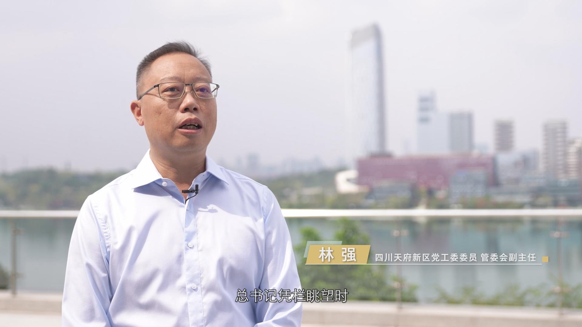 四川天府新区党工委委员、管委会副主任林强:“当时就在这里,总书记凭栏眺望时,还饶有兴致地问起,兴隆湖的‘兴隆’是哪两个字啊,我们回答道:是事业兴隆的‘兴隆’。在兴隆湖畔,习近平总书记指出,天府新区是‘一带一路’建设和长江经济带发展的重要节点,一定要规划好建设好,特别是要突出公园城市特点,把生态价值考虑进去,努力打造新的增长极,建设内陆开放经济高地。”