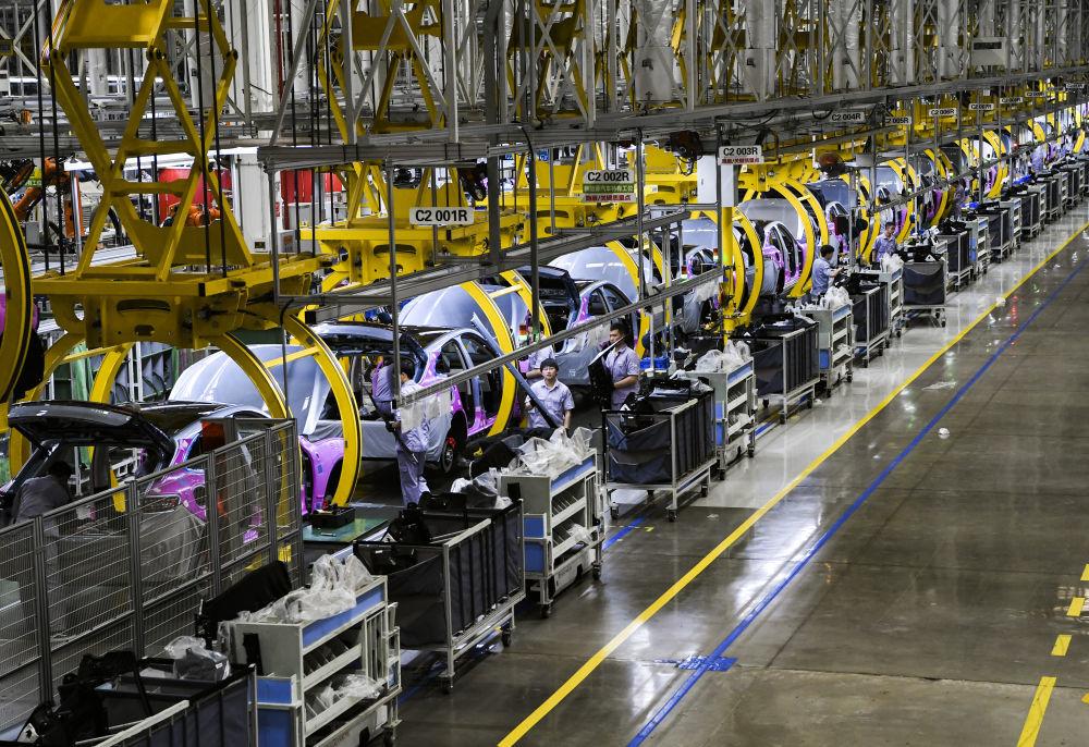 这是2022年6月27日拍摄的赛力斯汽车有限公司重庆两江智慧工厂作业现场。新华社记者 王全超 摄