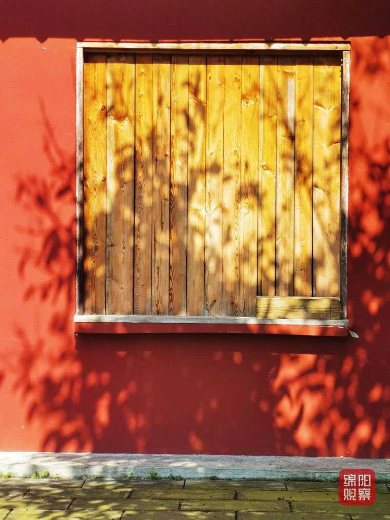 树叶在红墙上留下了影子