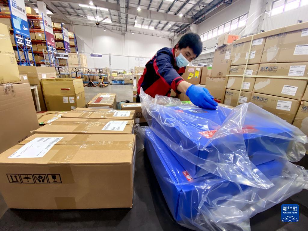 5月20日,在上海泓明供应链分拨中心,工人在工作。