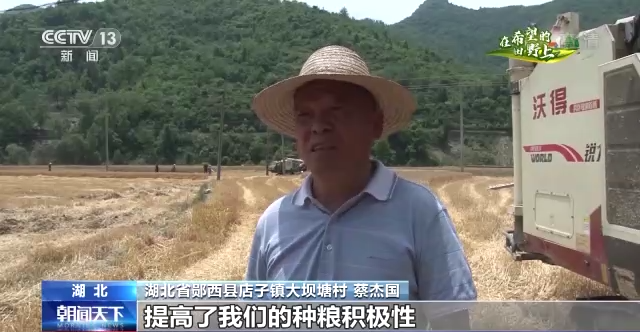 湖北省郧西县店子镇大坝塘村 蔡杰国:我们也很满意,提高了我们的种粮积极性。今天收割完了,明天就可以机械犁地,犁地结束后,接着就插秧。