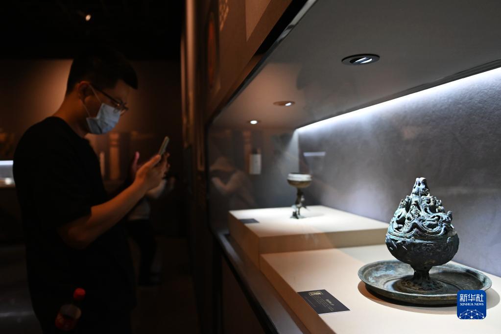 6月11日,观众在秦始皇帝陵博物院观看海昏侯刘贺墓出土文物。