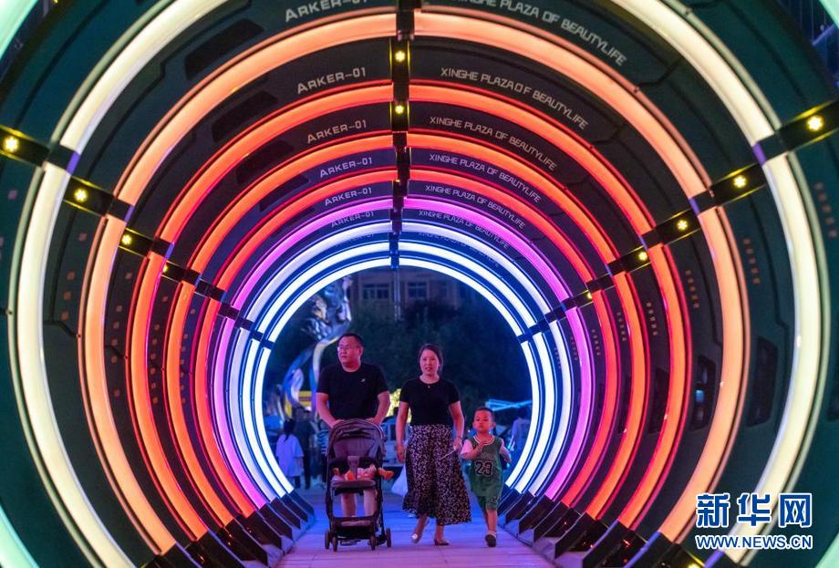 夏夜来临,位于山西省运城市盐湖区的星河生活广场灯光璀璨,吸引了不少市民前来打卡游玩、品尝美食。