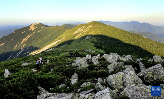 仲夏时节,陕西省商洛市洛南县的草链岭植被繁茂,凉爽宜人。草链岭海拔2646米,和西岳华山遥遥相望,植物垂直分布明显。
