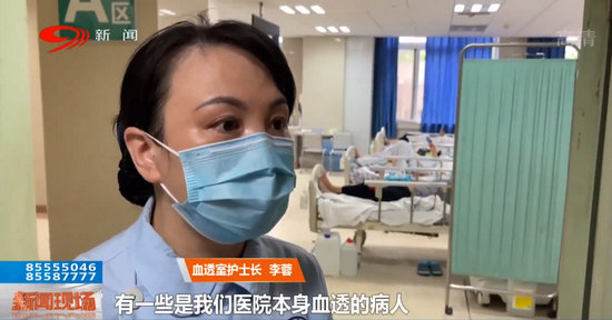护士长 李蓉:有一些是我们医院本身血透的病人,那么有一些病人是外区的,就不是我们医院门(诊)透(析)的病人,因为这些病人是在封控区,他去不了原来的那些医院,所以就由那个我们高新区的统一安排,送到我们医院的隔离病房来进行血透。