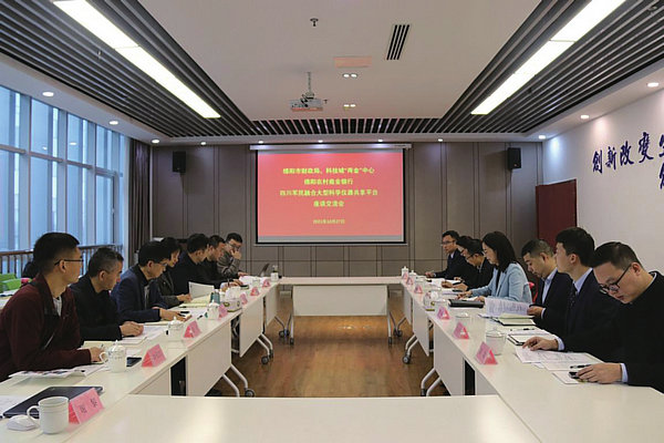 ↑绵阳市财政局、科技城“两金中心”、绵阳农村商业银行共同到四川大型科学仪器共享平台调研