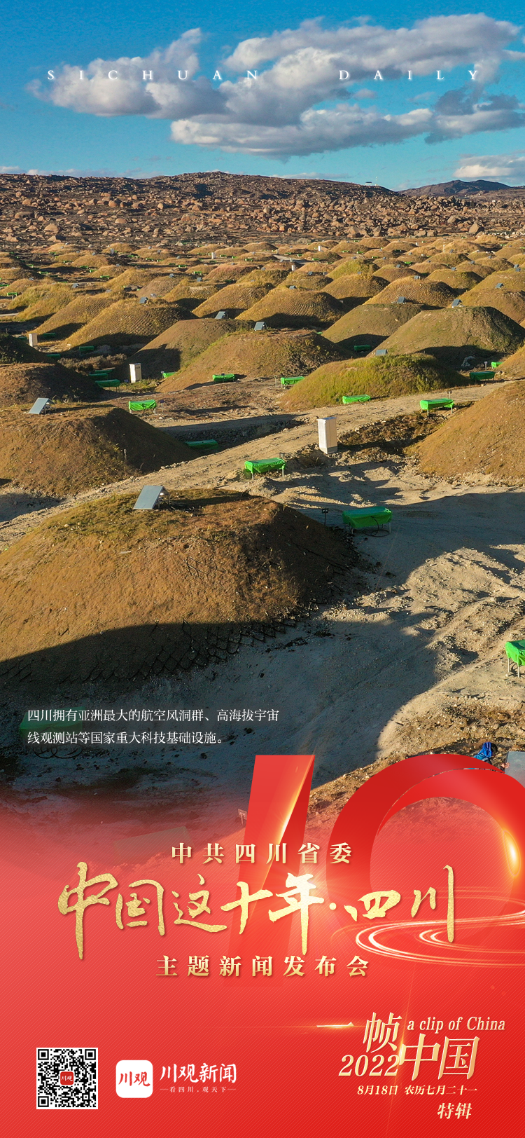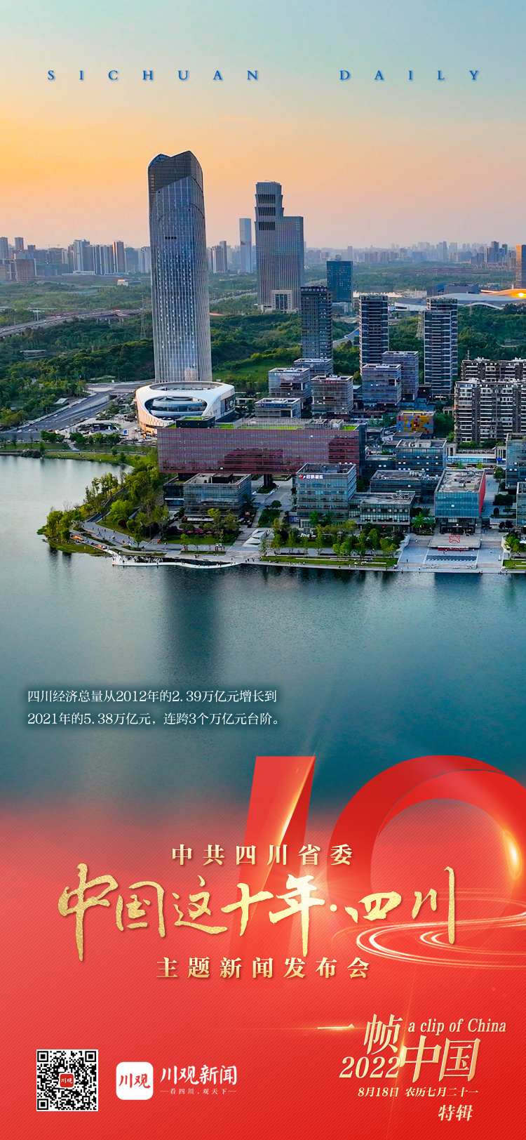 • 今天,川观新闻“一帧中国”栏目推出“四川十年”特辑,用发布会上提到的一幅幅壮美画卷、一个个精彩瞬间,带你领略四川这些年取得的巨大成就。扫描海报上的二维码,还可了解更多相关内容。
