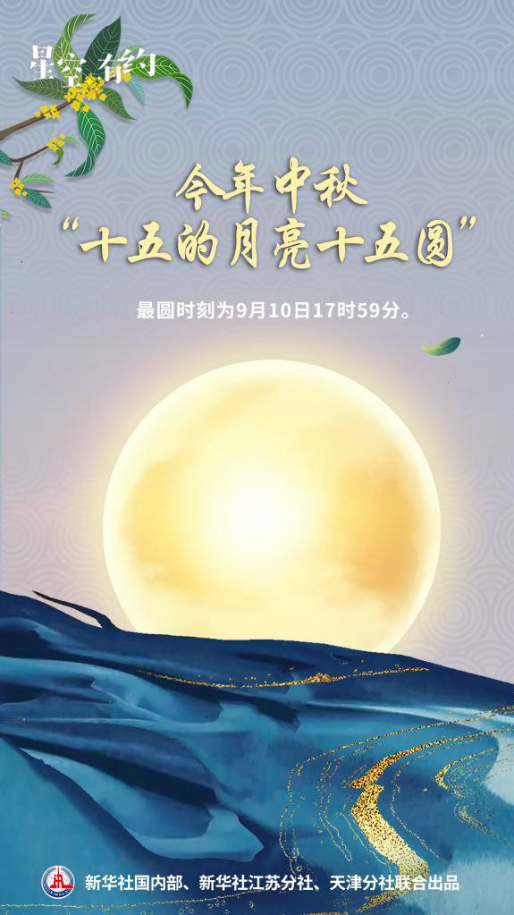 新华社南京9月8日电 “一年月色最明夜,千里人心共赏时”,9月10日将迎来一年一度的中秋节。天文科普专家告诉记者,今年中秋是“十五的月亮十五圆”,中秋满月最圆时刻为9月10日17时59分。傍晚时分,一轮圆月升起,正是公众赏月佳时。