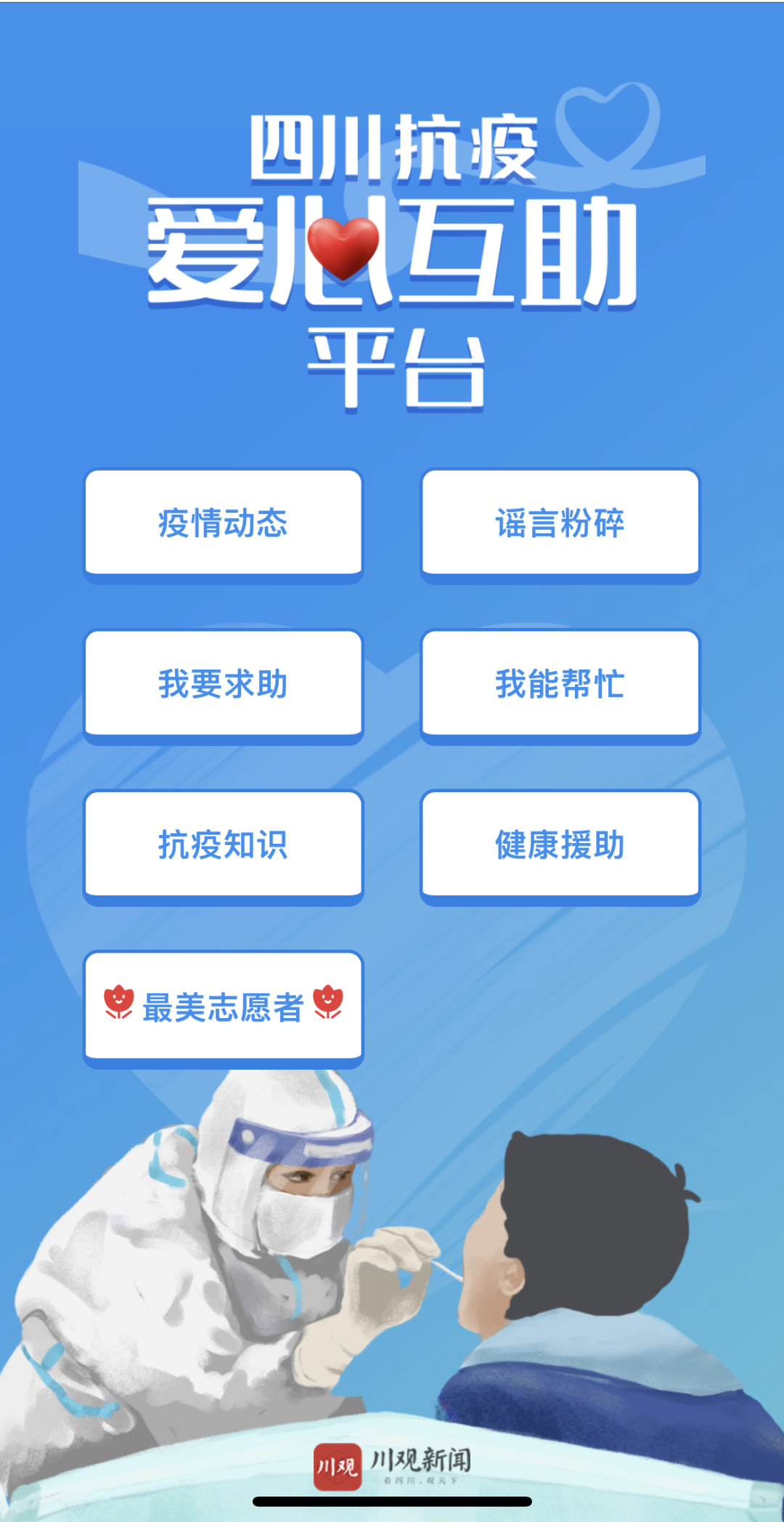 8月31日起,川观新闻上线四川抗疫爱心互助平台,联合四川大学华西公共卫生学院/华西第四医院、四川省精神医学中心、四川护理职业学院附属医院(四川省第三人民医院)等为广大网友提供“抗疫·健康援助”,其中联合四川省精神医学中心开通的“抗疫·心理援助”,可为大家提供心理热线服务,会有“专家天团”有针对性地提供心理疏导和心理支持。