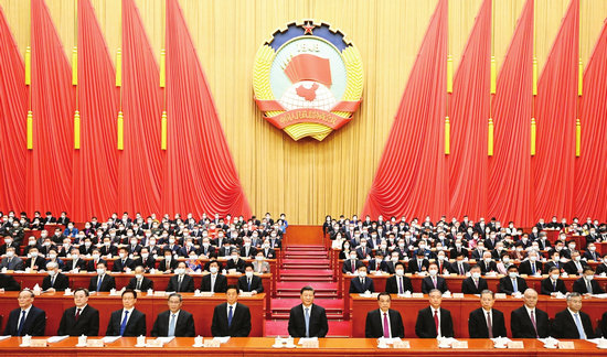 3月4日,中国人民政治协商会议第十四届全国委员会第一次会议在北京人民大会堂开幕。这是习近平、李克强、栗战书、汪洋、李强、赵乐际、韩正、蔡奇、丁薛祥、李希、王岐山在主席台就座。 (新华社记者 李学仁 摄)