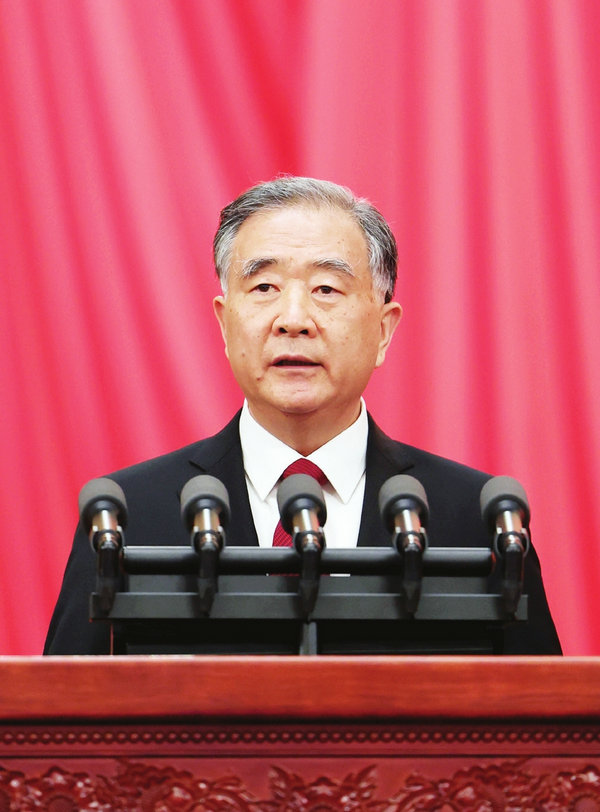 下午3时,王沪宁宣布大会开幕,全体起立,高唱中华人民共和国国歌。