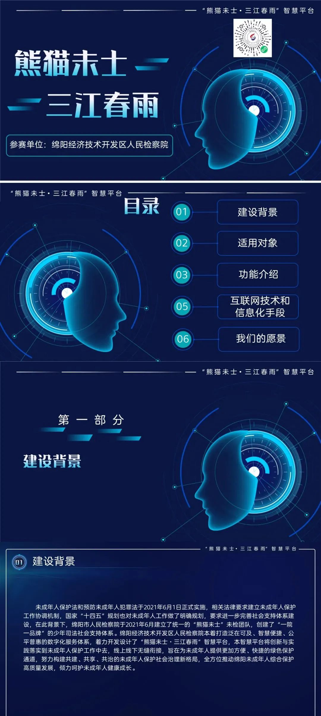 日前,法制日报社主办的2023政法智能化建设创新案例及论文征集宣传活动结果揭晓, 绵阳市经开区人民检察院报送的 “熊猫未士·三江春雨”未保智慧平台成功入选2023年全国智慧检务创新案例。