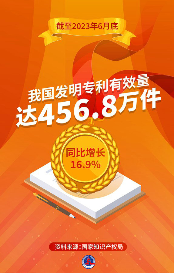 新华社北京7月18日电(记者温竞华、王琳琳)国家知识产权局副局长胡文辉在18日举行的国新办新闻发布会上说,截至今年6月底,我国发明专利有效量达456.8万件,同比增长16.9%,知识产权事业发展稳中有进、稳中提质。