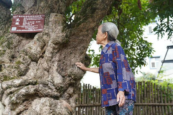 “原来罗奶奶家这棵古树被一圈水泥地面围绕,不利于古树生长,我们改成了透气砖,还加了排水管道。”何震中说,他们为古树建立了“一树一档”的信息档案,并制作悬挂古树名木保护铭牌,“铭牌上有我们的电话,村民发现古树有问题随时可以联系工作人员来查看。”