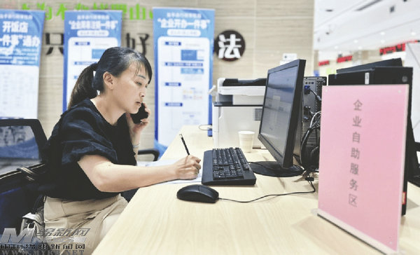 在自助服务区工作人员的指导下,赵娟很快完成了资料提交。后台审核后,不到半天,赵娟就顺利拿到了营业执照。下一步,完成印章刻字、银行开户等环节后,公司就可以正常运营了。