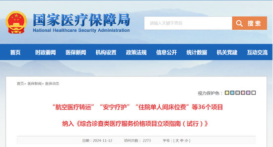 新华社北京11月12日电(记者徐鹏航)国家医保局近日编制印发《综合诊查类医疗服务价格项目立项指南(试行)》,将现行综合诊查类价格项目整合为36项,新增设立“航空医疗转运”项目、“安宁疗护”项目等,单独设立“上门服务费”,更好促进医疗服务质量提升。