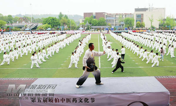 4月18日上午,在四川中医药高等专科学校举办的“运动现在,奋斗未来”第十四届春季运动会暨第五届岐伯中医药文化节太极拳展演现场,近千名师生共同展演我国非物质文化遗产——太极拳,场面壮观。
