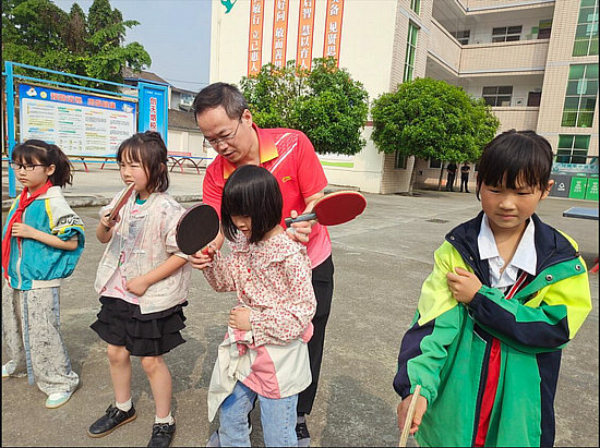 年5月9日,该校开展了“银球飞旋 快乐童年”乒乓球特色工作活动。活动中,该校党支部书记、校长彭真致欢迎词。邀请了安州区业余体校党支部书记、校长,国家级社会体育指导员,安州区乒乓球资深教练刘英,安州区乒乓球比赛团体冠军得主,安州区优秀乒乓球运动员张义兵、贺炜、王翠香、邱弟军,对全校师生进行了一堂生动而专业的乒乓球教学课。教练员们针对学校乒乓球教学需要,分别到各个班级,重点讲解了乒乓球运动的意义、乒乓球教学基础以及乒乓球比赛规则,手把手教学生打球,指导学生基本动作,和孩子们交流乒乓球运动的心理体验,受到孩子们的热烈欢迎。