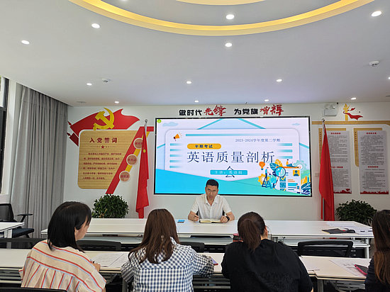 最后,分管教学副校长对老师们的分析一一点评,并对英语老师们提出了五点建议和期望:一是重心下移,脚踏实地缩差距;二是对标对点,改进教法夯基础;三是以生为本,强化训练养习惯;四是稳扎稳夯,指导方法,提效率;五是强化激励,多措并举创佳绩。他勉励老师们在工作中进一步关注落实,加强研究,优化方法,资源共享,携手并肩打好整体战,同心协力争创新业绩。(秦巧林 黄友勇)