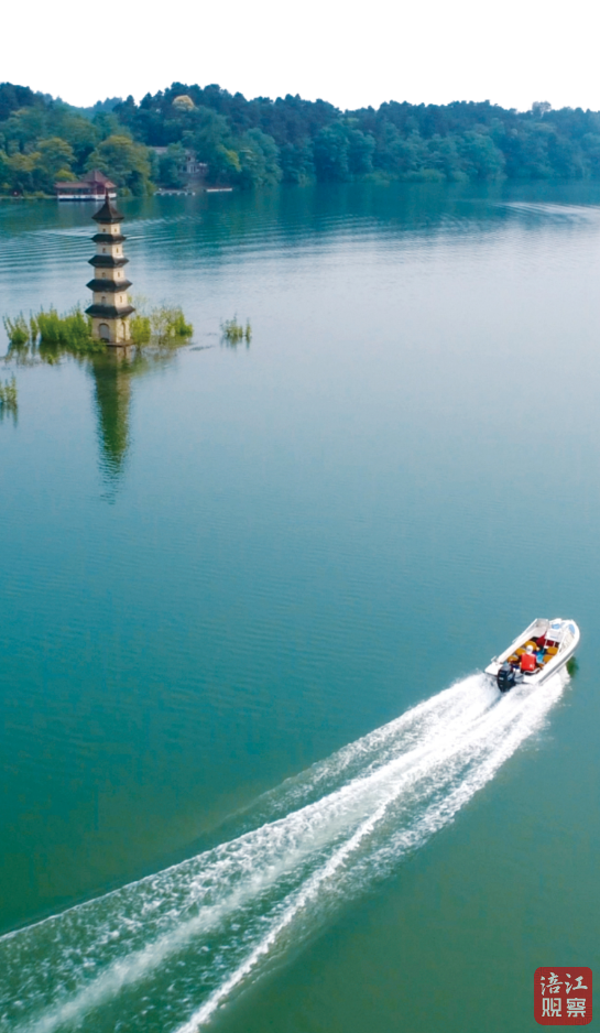 水面渐阔,一座古香古色、飞檐翘角的建筑映入眼帘,这便是始建于清朝的伏虎塔,一座有着300多年悠久历史的文物。行船湖中,文物建筑和岛屿丛林向后延伸出一座西蜀“自然文化博物馆”,向过往游客“诉说”着这颗“古海蓝眼泪”的神秘韵味。登临湖心岛,曲径通幽,山林环绕,沿岛是2.4公里的彩虹森林步道,两侧乔木灌木邻水相依,自然人文多维景观相映成趣。