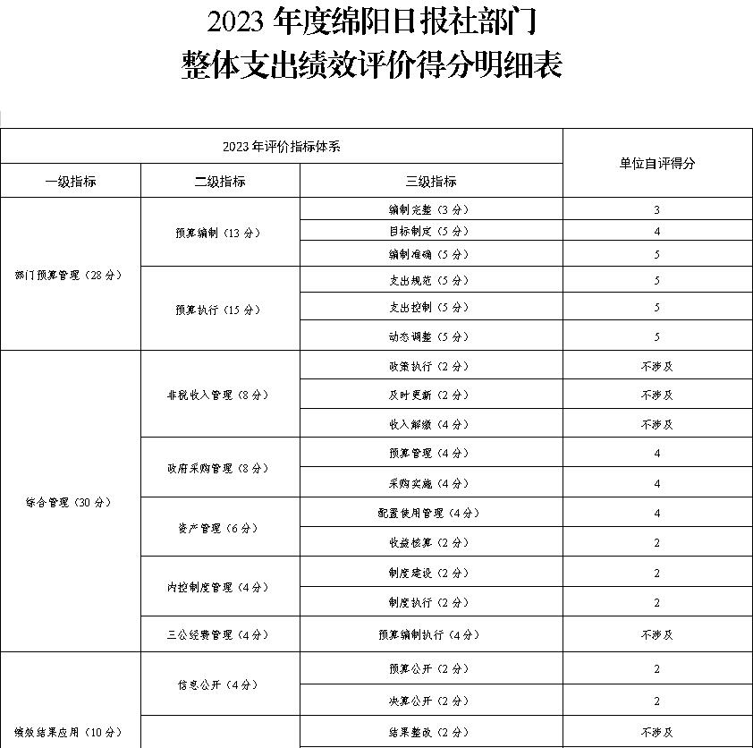 附件:2023年度绵阳日报社部门整体支出绩效评价得分明细表