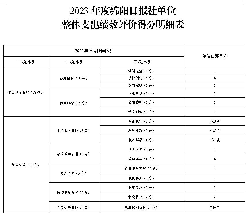 附件:2023年度绵阳日报社单位整体支出绩效评价得分明细表