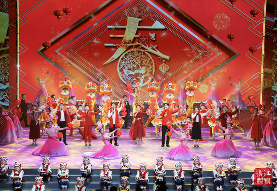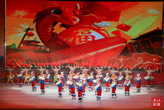 当晚7时30分,晚会在开场歌舞《迎春接福》的欢快氛围中拉开帷幕。在铿锵鼓乐、欢歌热舞的陪伴下,共迎新年到来,奏响春的序曲,以更加昂扬的姿态走向未来。