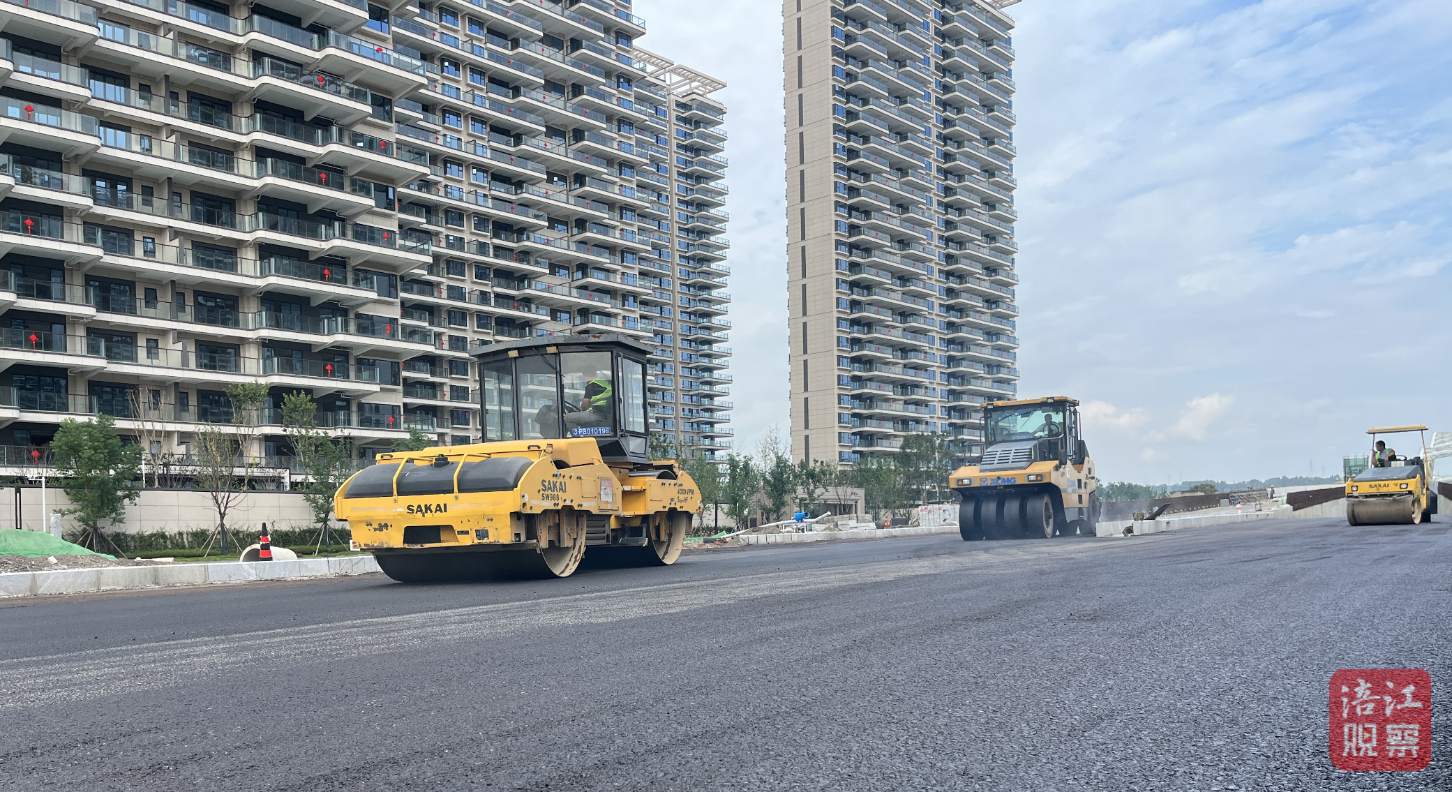 “经过前几天摊铺机、压路机等大型设备加班加点的作业,目前大桥涪城侧道路的沥青混合料摊铺、碾压已完成,正全面进入加速冲刺施工阶段。”现场项目负责人介绍,施工过程中,项目部严格把控原材料质量、混合料拌合、运输、摊铺温度及碾压工艺等各个环节,确保铺设质量符合设计规范要求。