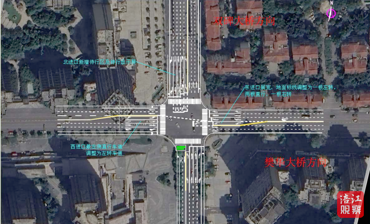 ◆三是优化西进口车道配置,调整为“两左、一直、一右”车道,精准匹配高峰时段左转车流需求;