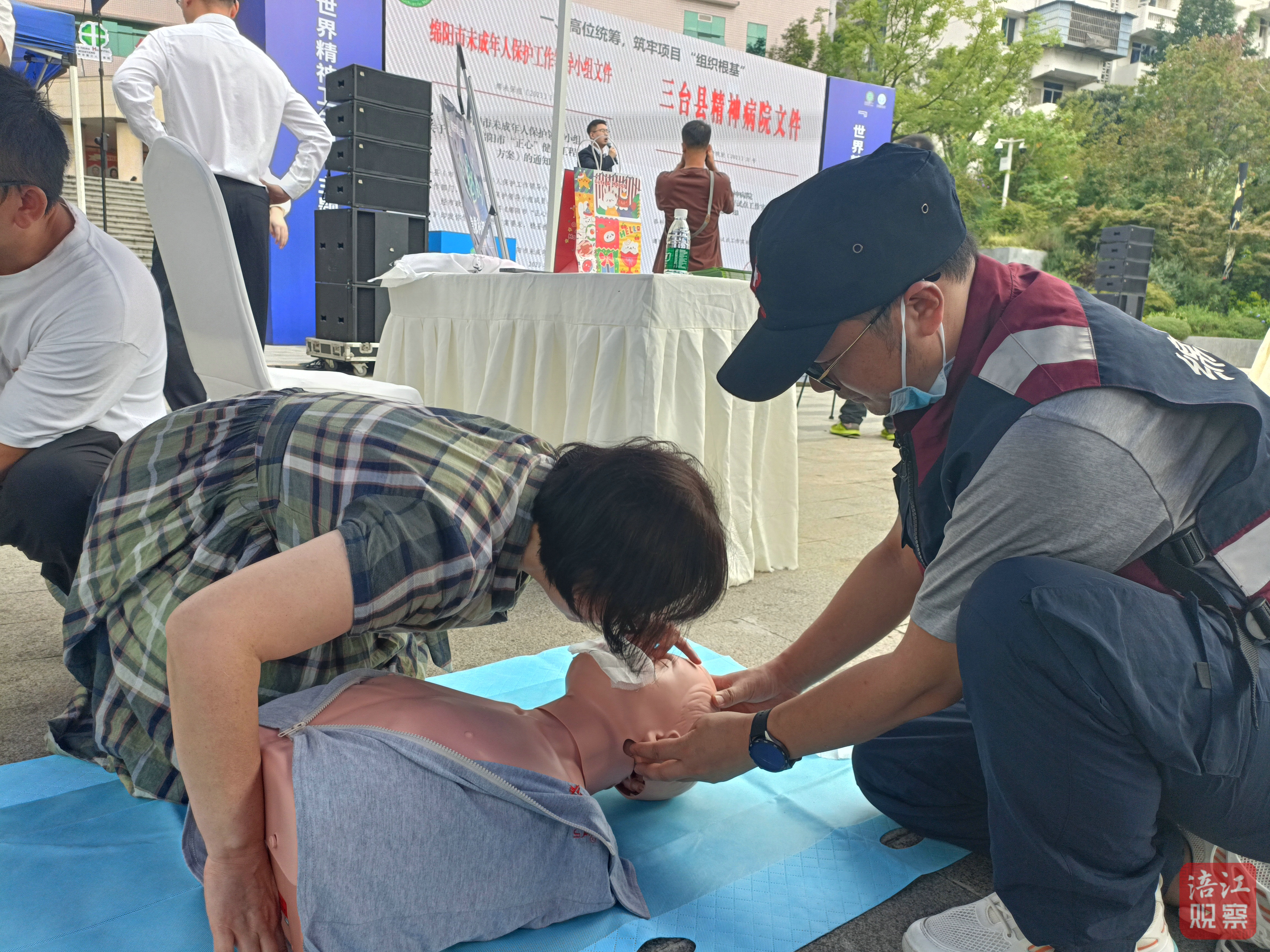 在急救知识宣讲环节,急诊科医生边讲解边演示,吸引了不少观众学习。正在学习心肺复苏的市民陶女士表示:“医生讲得特别清楚,亲手操作一遍印象更深刻,这是每个人都应该掌握的救命技能。”