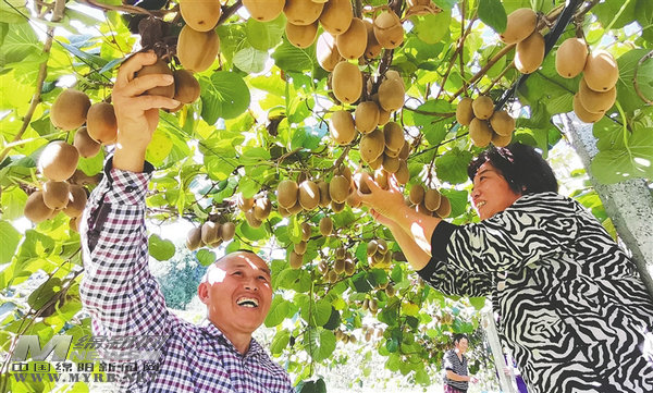 猕猴桃种植管理精细,从栽种到收获的每个环节都需要大量劳动力,这也为当地村民提供了家门口就业增收的好机会。村民李子兰一边熟练地剪下果实,一边说:“在这里务工每年能增收6000多元,还能照顾家里。”