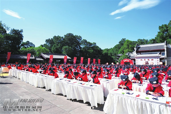 绵阳新闻网讯 10月13日,以“文昌星耀大蜀道·汉服启智聚英才”为主题的“文昌开笔礼”千人开智大典在绵阳梓潼七曲山震撼上演。1200余名学子身着传统汉服,共同挑战“最大规模的启智仪式”吉尼斯世界纪录TM称号,以庄重典雅的仪式为中华传统文化写下生动注脚。