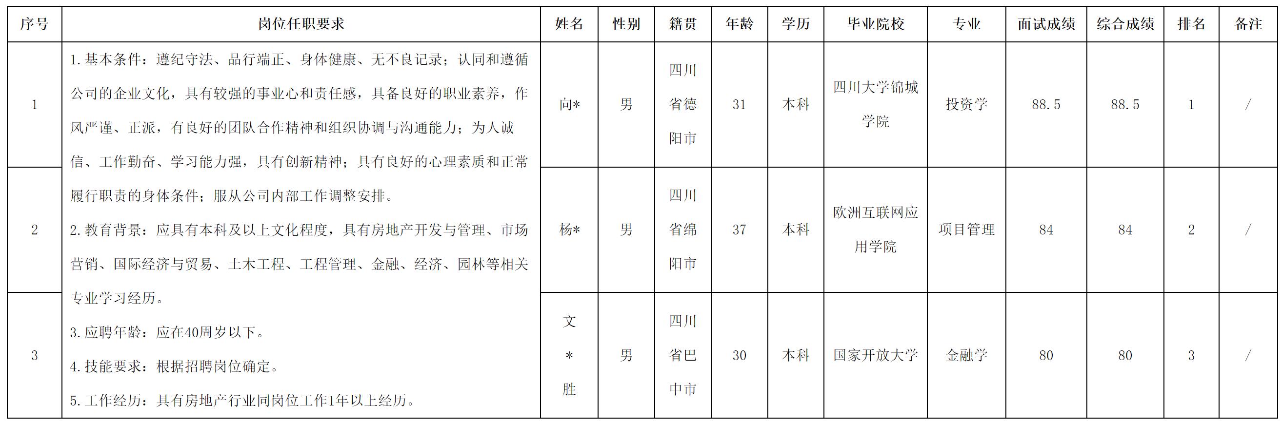 根据四川波鸿实业有限公司发布的招聘公告及招聘相关规定,经测试等程序,现将面试成绩予以公示。