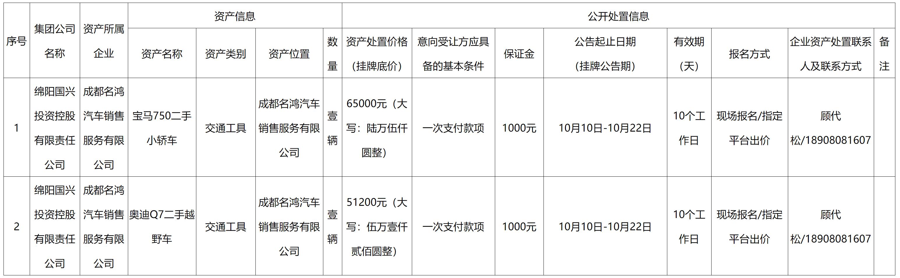 绵阳国兴投资控股有限责任公司资产处置公告