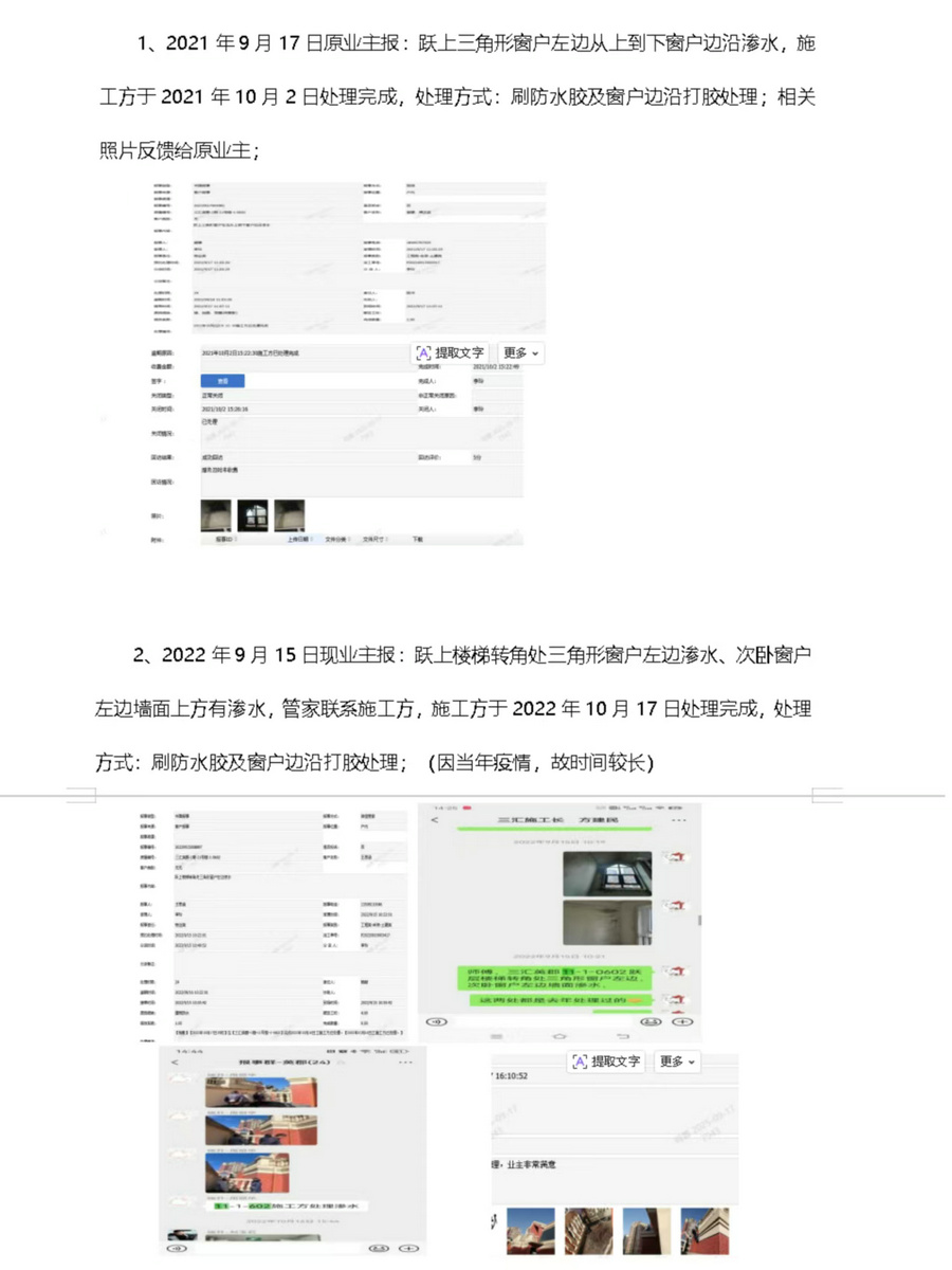 针对王女士的投诉,经开区住建局表示,9月17日接到反映后已立即开展核实工作。经查阅物业公司存档的报修记录、派工单据及沟通凭证,确认自房屋业主接房以来,每次业主就漏水问题提出报修,物业公司均按流程完成登记备案,并第一时间联系开发公司安排人员现场核查、施工,已履行协调沟通与服务配合义务。