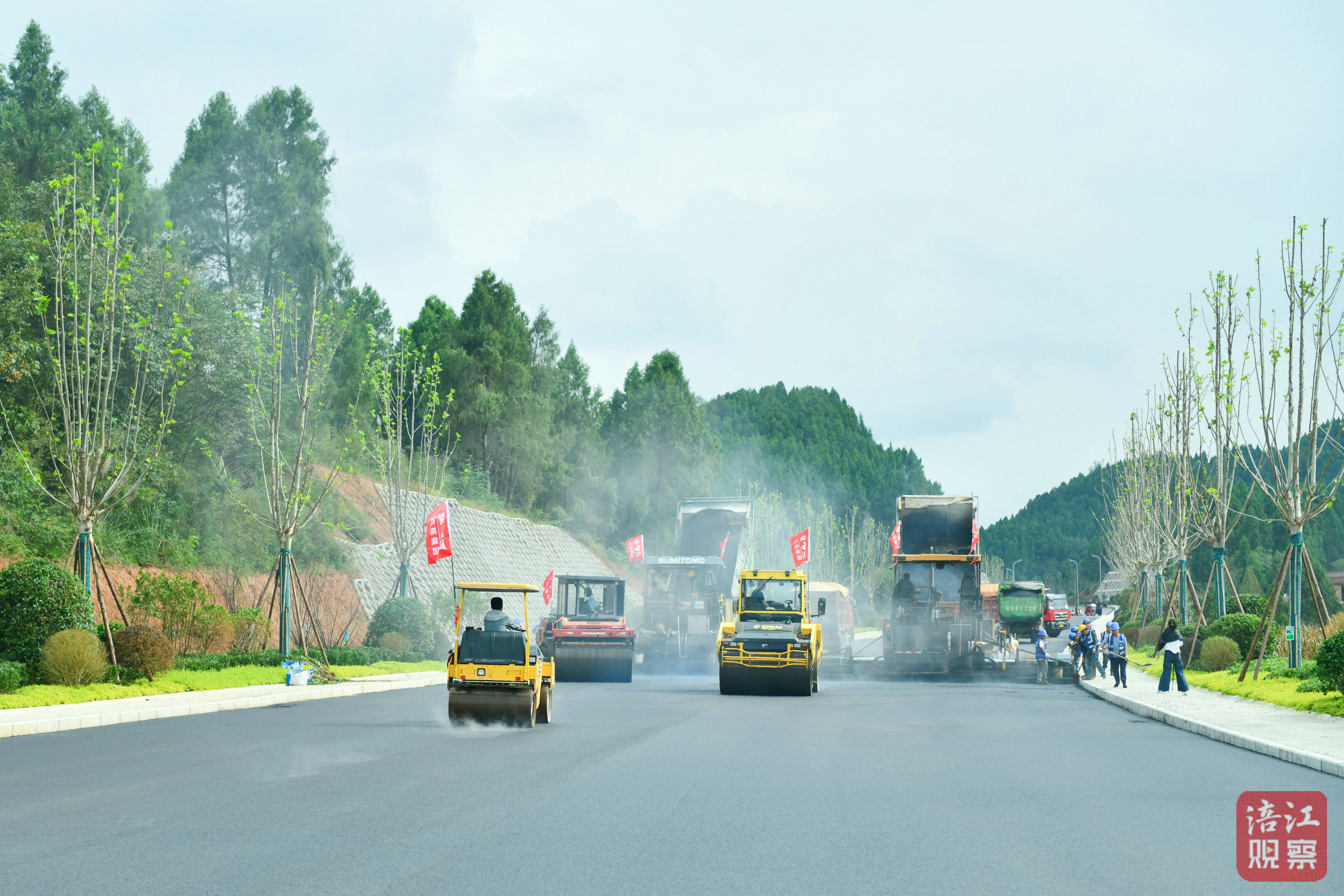 摊铺现场,随着摊铺机履带的快速转动,路基被迅速覆盖上一层平整的沥青。紧随其后的压路机来回碾压,将松散的沥青层压实平整,轮迹所过之处,路面变得光滑而坚实。