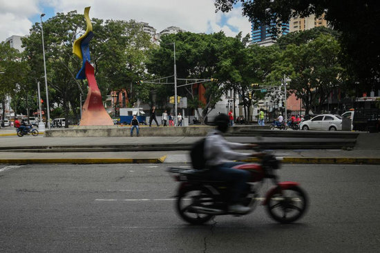 9月22日,在委内瑞拉首都加拉加斯,车流和行人经过市中心的交通干道。新华社发(马科斯·萨尔加多摄)