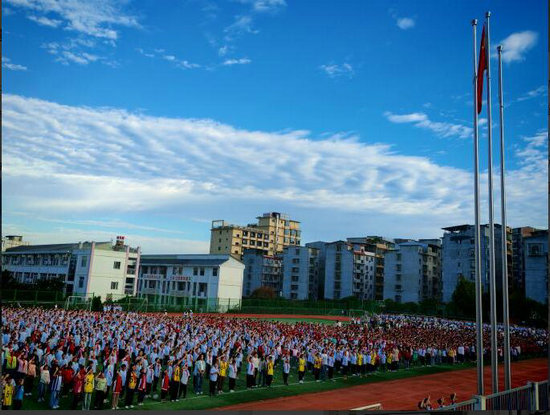 全体师生齐聚操场,举行了主题升旗仪式,五星红旗冉冉升起,庄严的国歌声响彻校园。