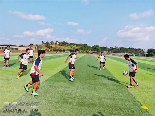 绵阳新闻网讯 10月14日,三台县职业技术学院训练场上,绵阳九洲长虹队的球员们正挥洒着汗水,积极备战即将到来的客场阿坝之战。