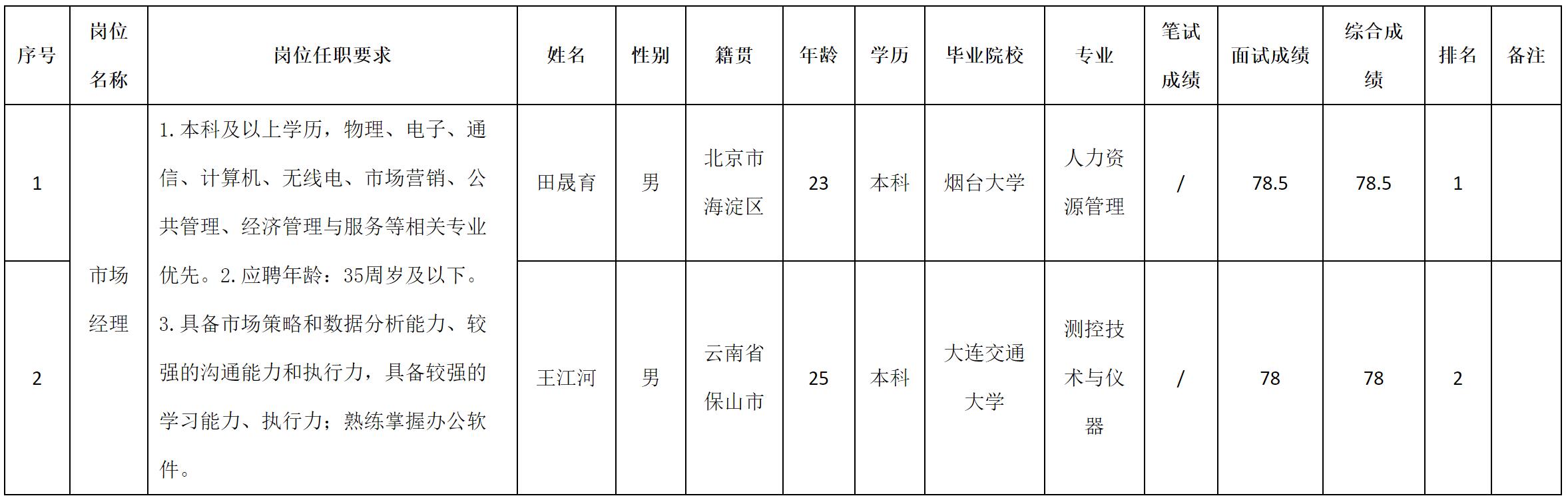 四川九洲防控科技有限责任公司关于招聘市场经理测试成绩的公示
