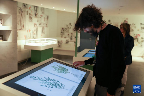10月16日,在意大利罗马,嘉宾在联合国粮食农业博物馆观看植物图鉴。