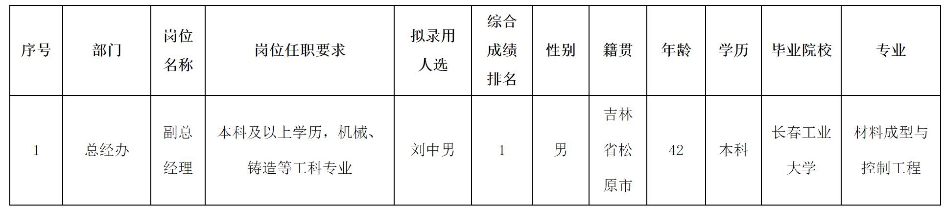 根据四川波鸿实业有限公司发布的招聘公告及招聘相关规定,经面试、体检等程序,拟录用刘中男同志到四川威斯卡特工业有限公司工作,现予以公示,具体情况如下: